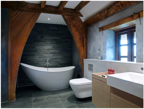 Đá bazan đen làm tiểu cảnh, phòng tắm trong nhà