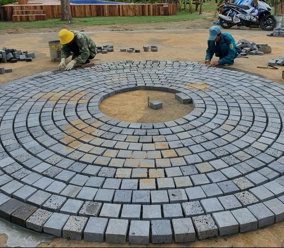 Do đặc điểm dễ bị ảnh hưởng từ môi trường, chịu tác động lớn bên ngoài nên các loại đá lát sân vườn cần yêu cầu độ cứng, rắn chắc cao và chắc chắn đá bazan có thể đáp ứng được yêu cầu này và đây là loại vật liệu được sử dụng khá phổ biến trong trang trí sân vườn. Có thể làm lối đi, đá ốp tường, ốp bồn cây… tạo nên một vẻ đẹp mới mẻ và độc đáo. Sử dụng đá bazan tạo cảm giác gần gũi hơn cho khu vườn, có lợi cho sức khoẻ vì bazan là loại đá có khả năng giữ nhiệt giảm 60% so với các loại đá thông thường. Hơn nữa độ bền đá cao và khả năng chống trơn trượt và rêu mốc tốt rất thích hợp để lát sân vườn.